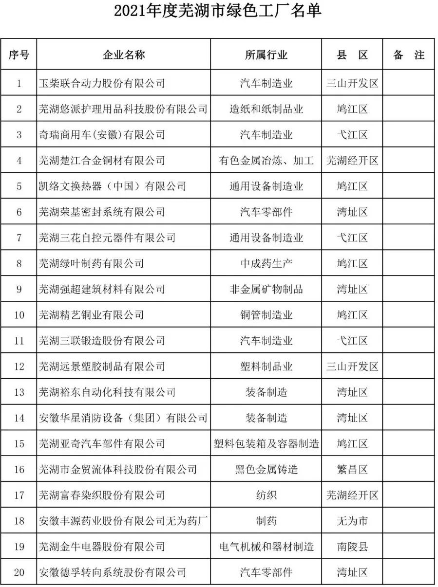蕪湖市2021年度綠色工廠(chǎng)名單公示【 · 瀏覽 · 】 -